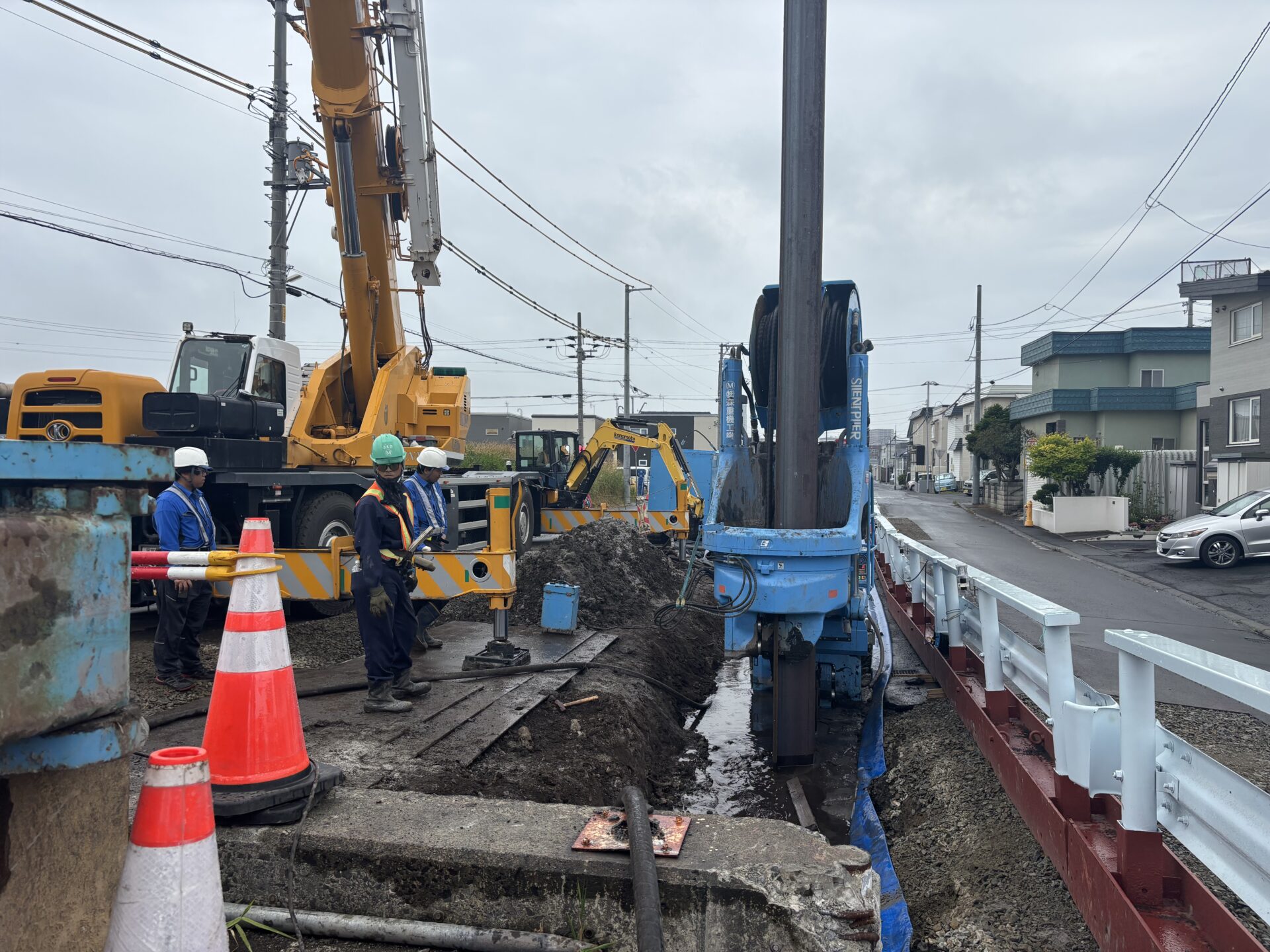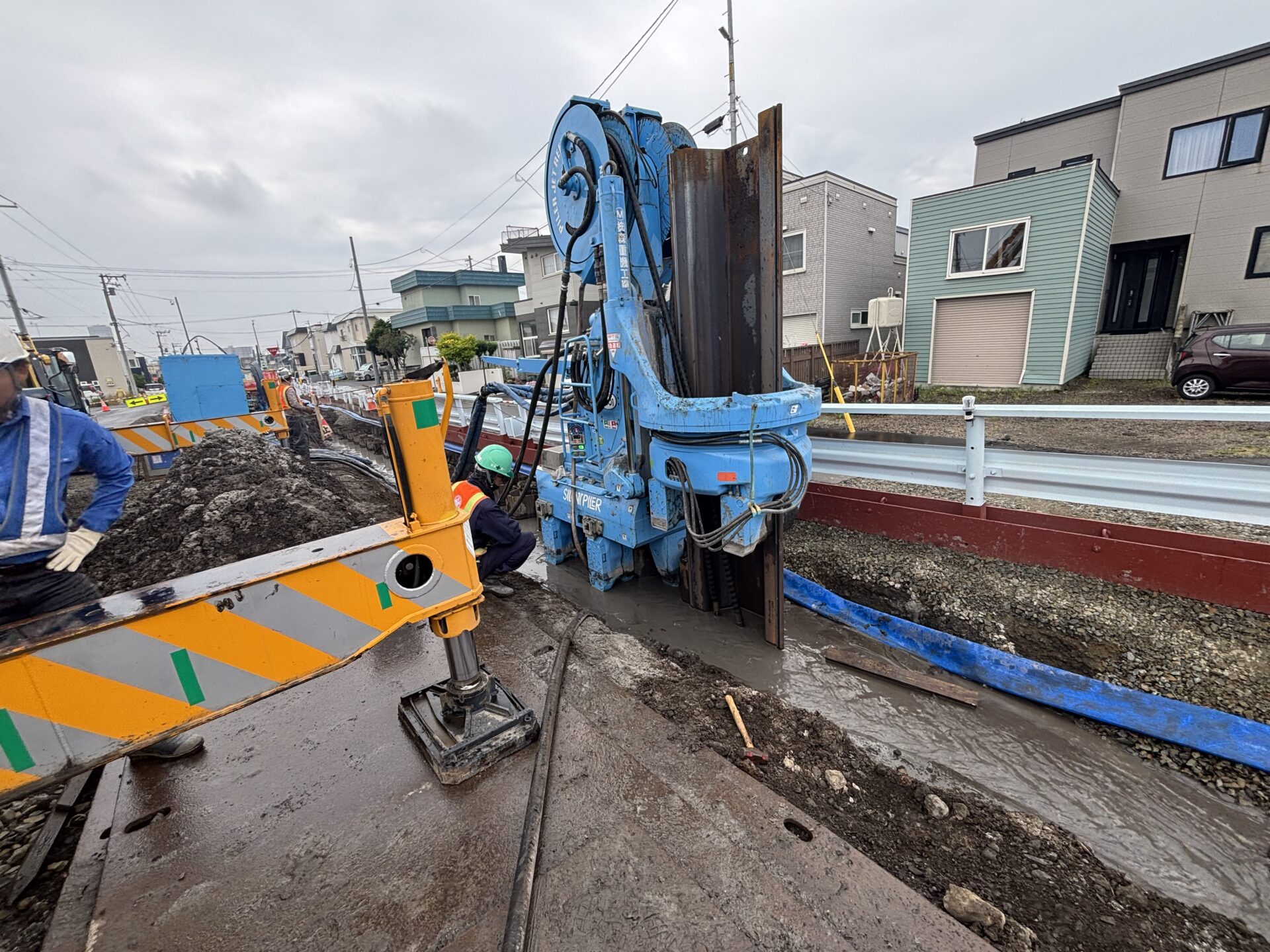 | 土質条件 | [油圧圧入引抜工] 鋼矢板圧入_SP25H,L=17.0m,N=255枚 鋼矢板圧入_SP25H,L=17.0m,N=40枚 鋼矢板圧入SP45H,L=15.0m,N=2枚 |