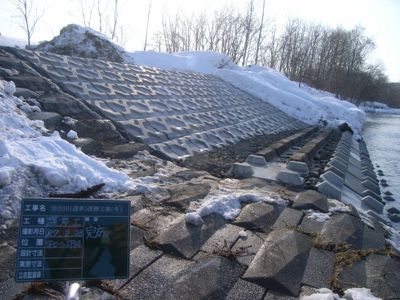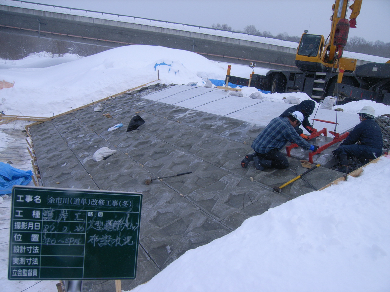 ・コンクリートブロック工(連節ブロック張) L=13.5m、A=101.6m2