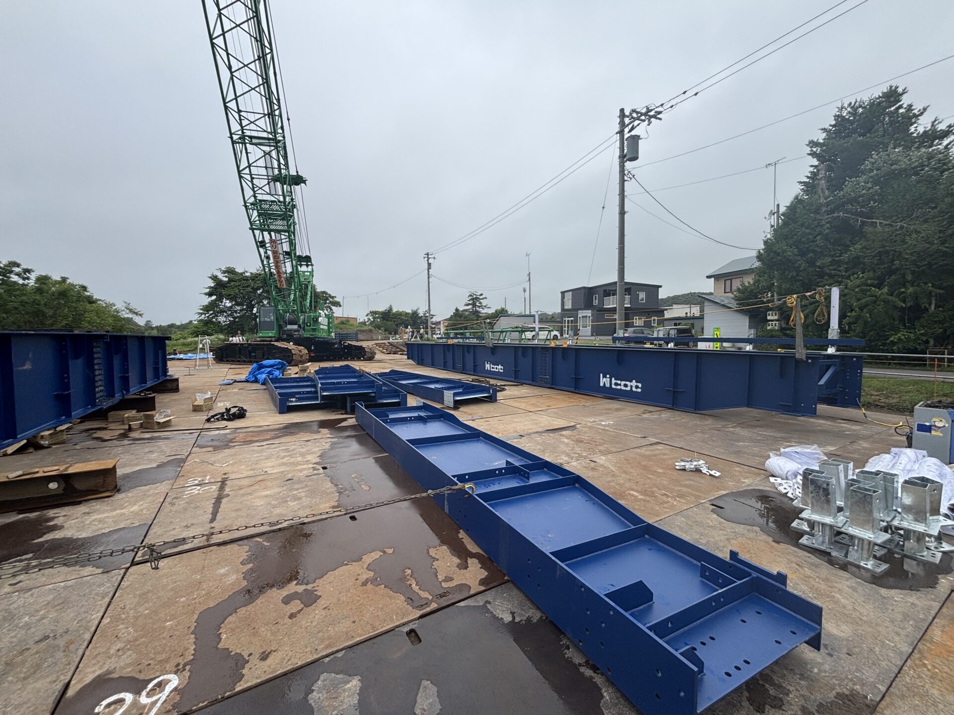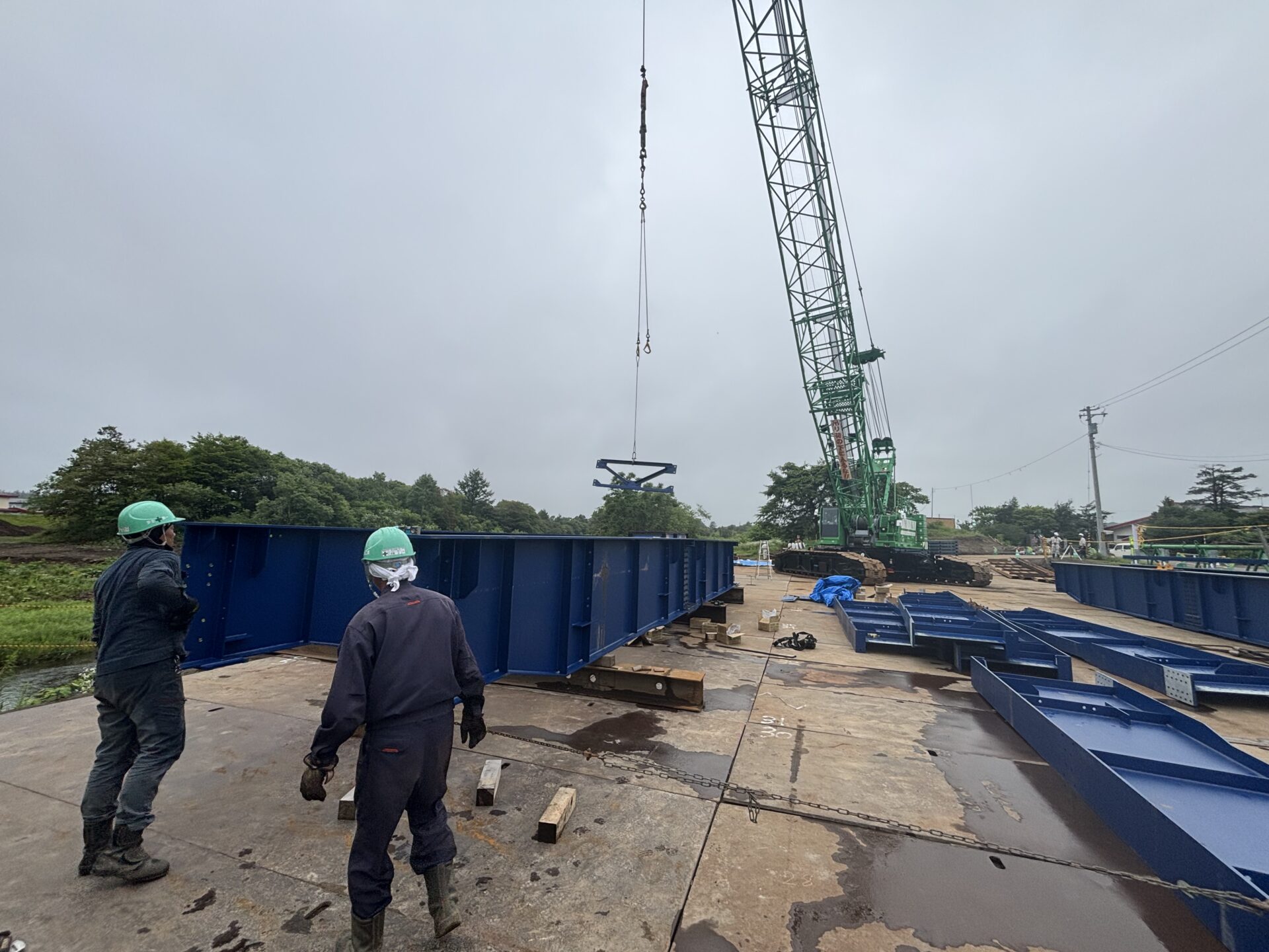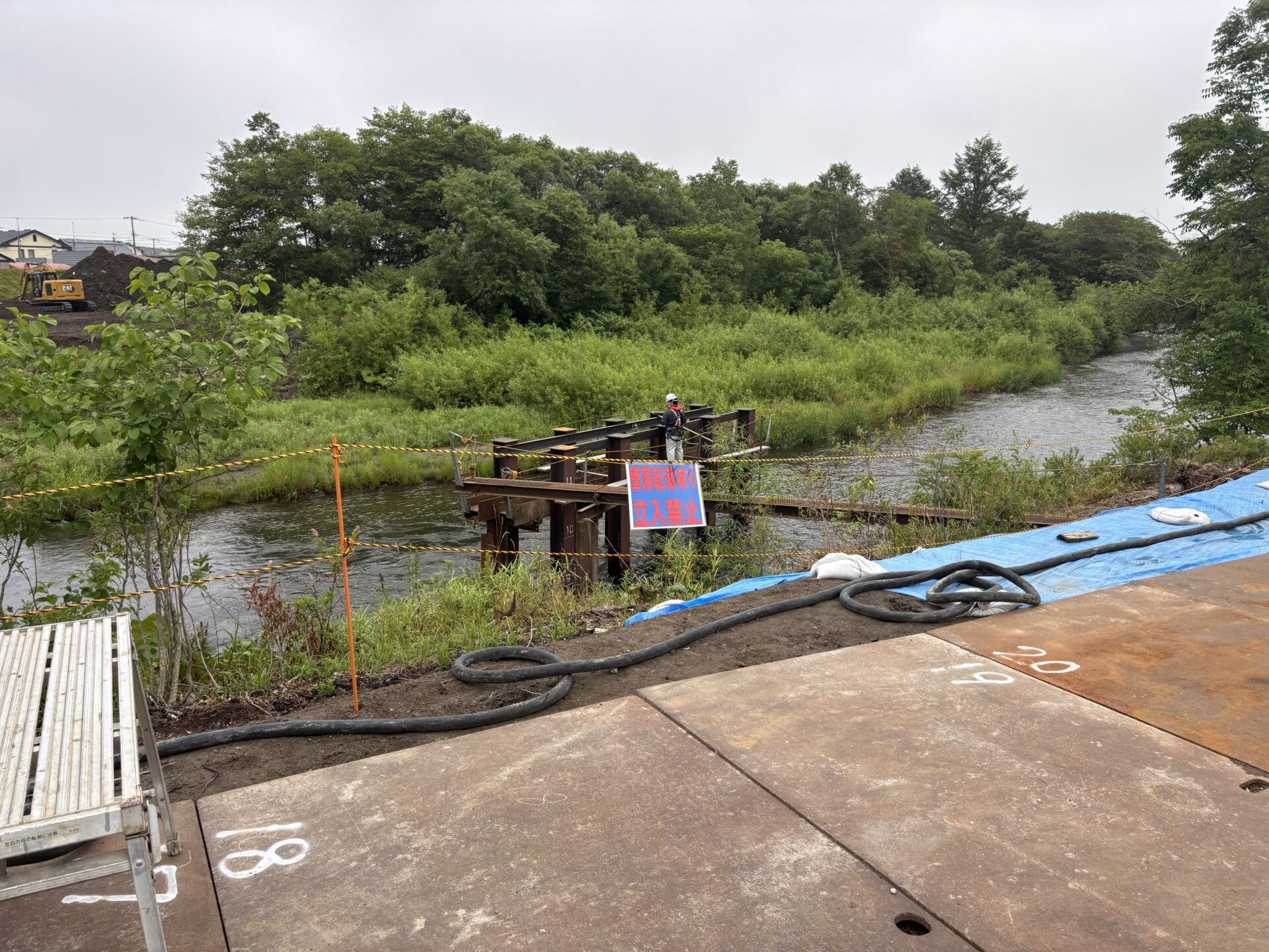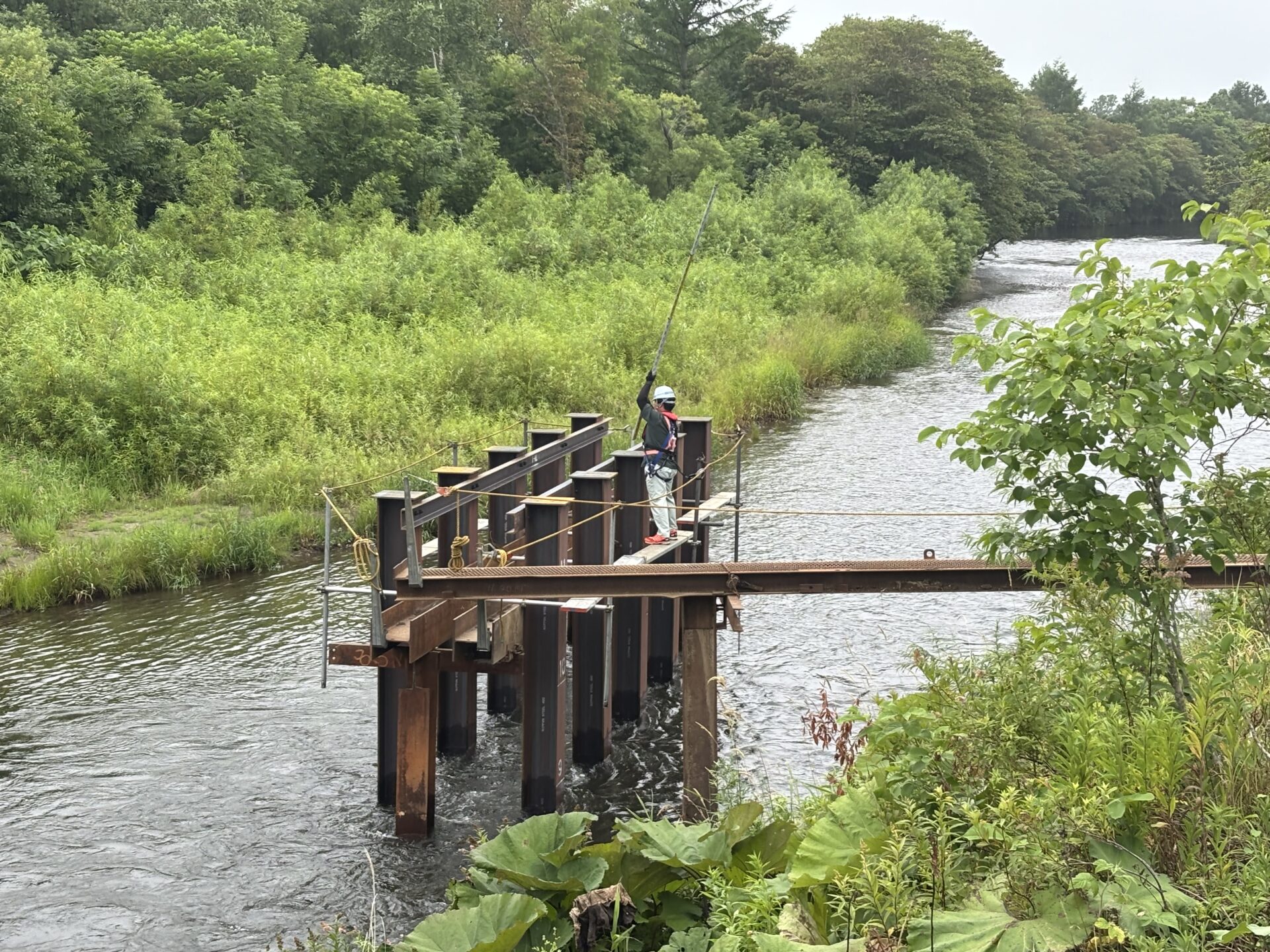| 施工量 | [バイブロハンマ工] 橋脚打込_H型鋼,L=10.5m,N=12本 下部工設置_W=10.9t 上部工架設_W=30.7t 覆工板設置_A=120m2 高欄設置_L=120m |