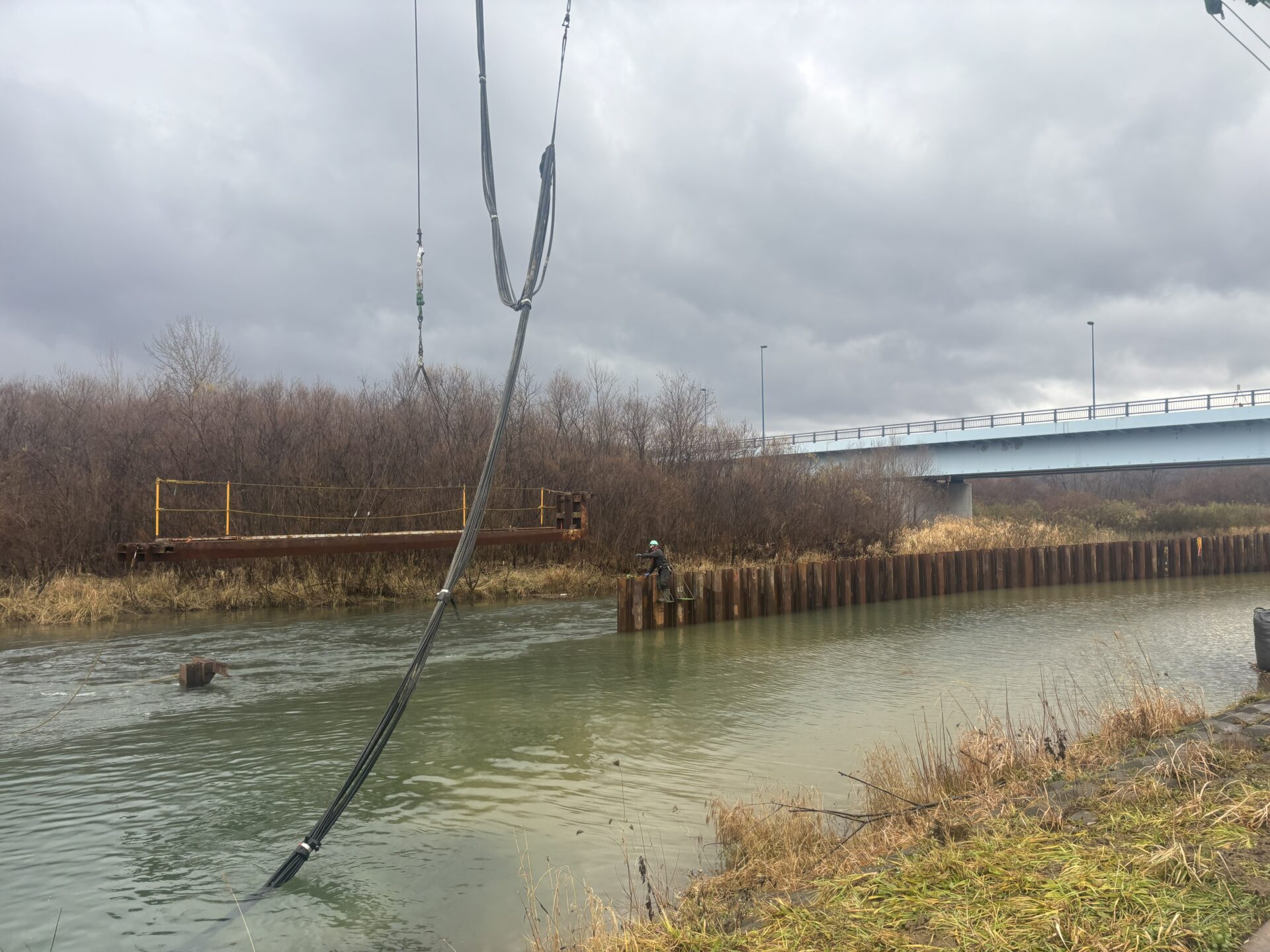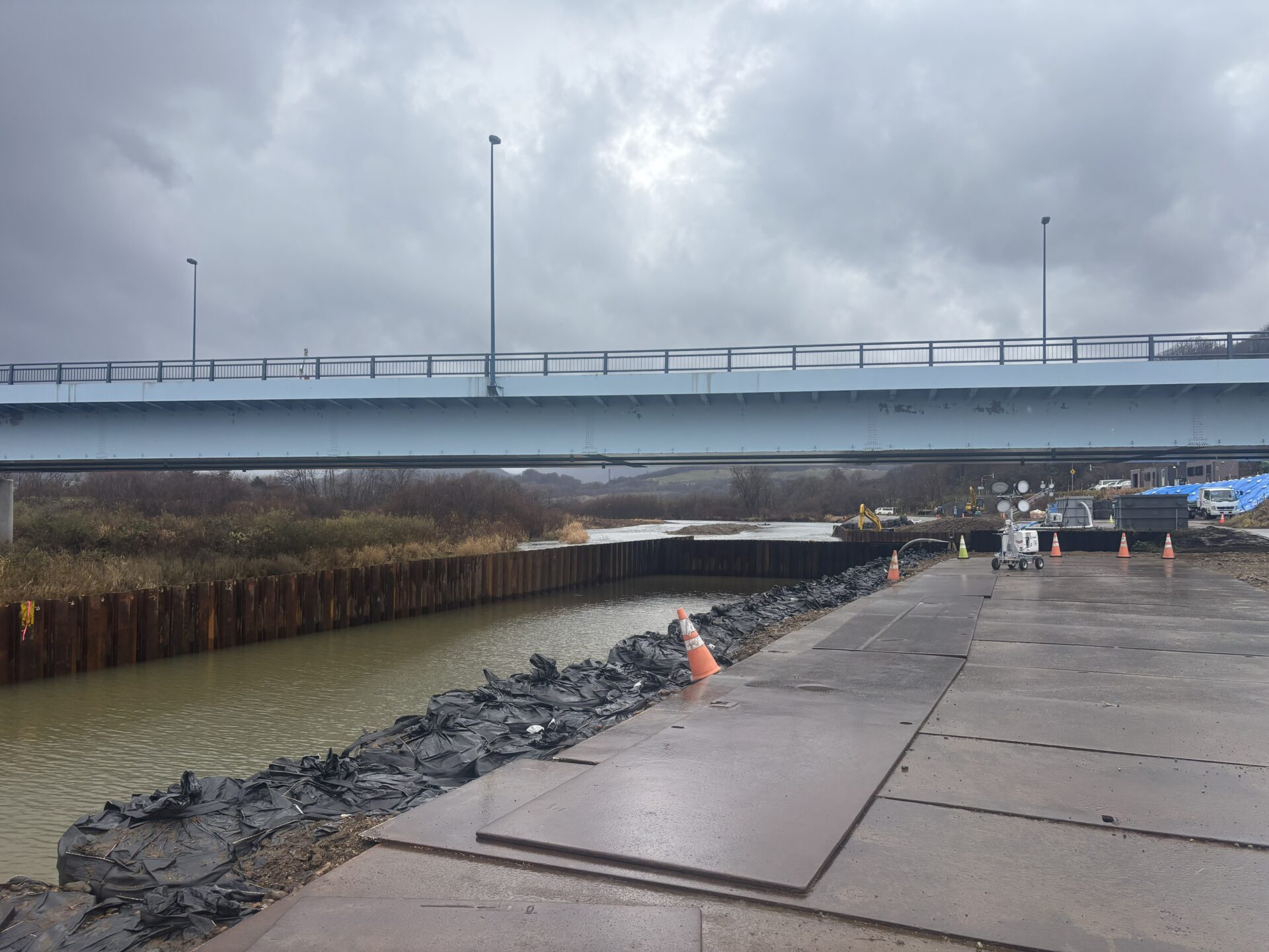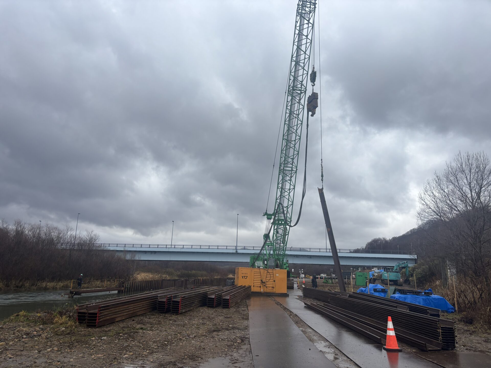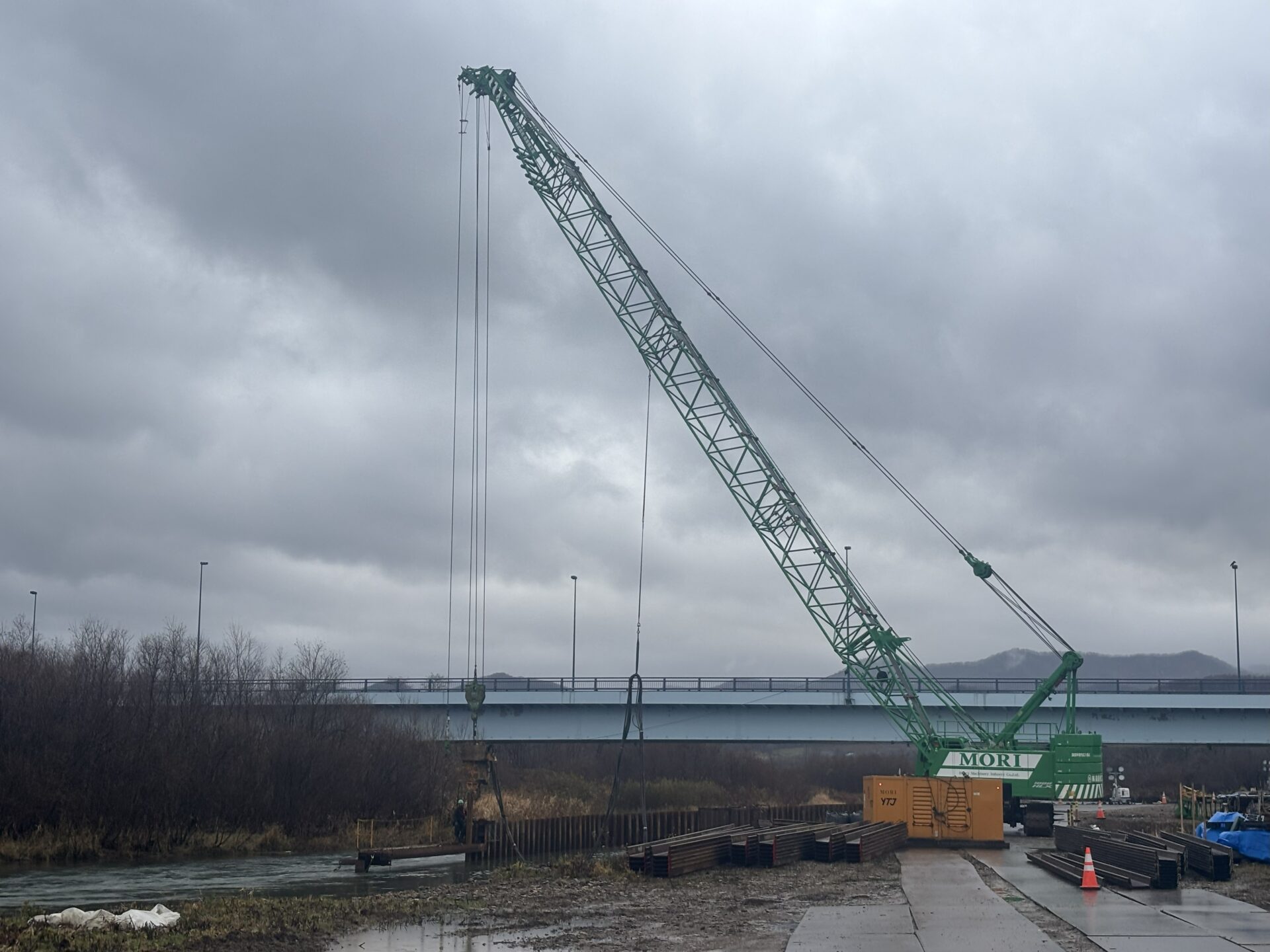 | 施工量 | [バイブロハンマ工] 鋼矢板打込・引抜_SPⅢ,L=9.0m,N=16枚 [油圧圧入引抜工] 鋼矢板圧入・引抜_SPⅢ,L=6.5~10.0m,N=391枚 [上部障害クリア工法] 鋼矢板圧入・引抜_SPⅢ,L=9.0m,N=42枚 |